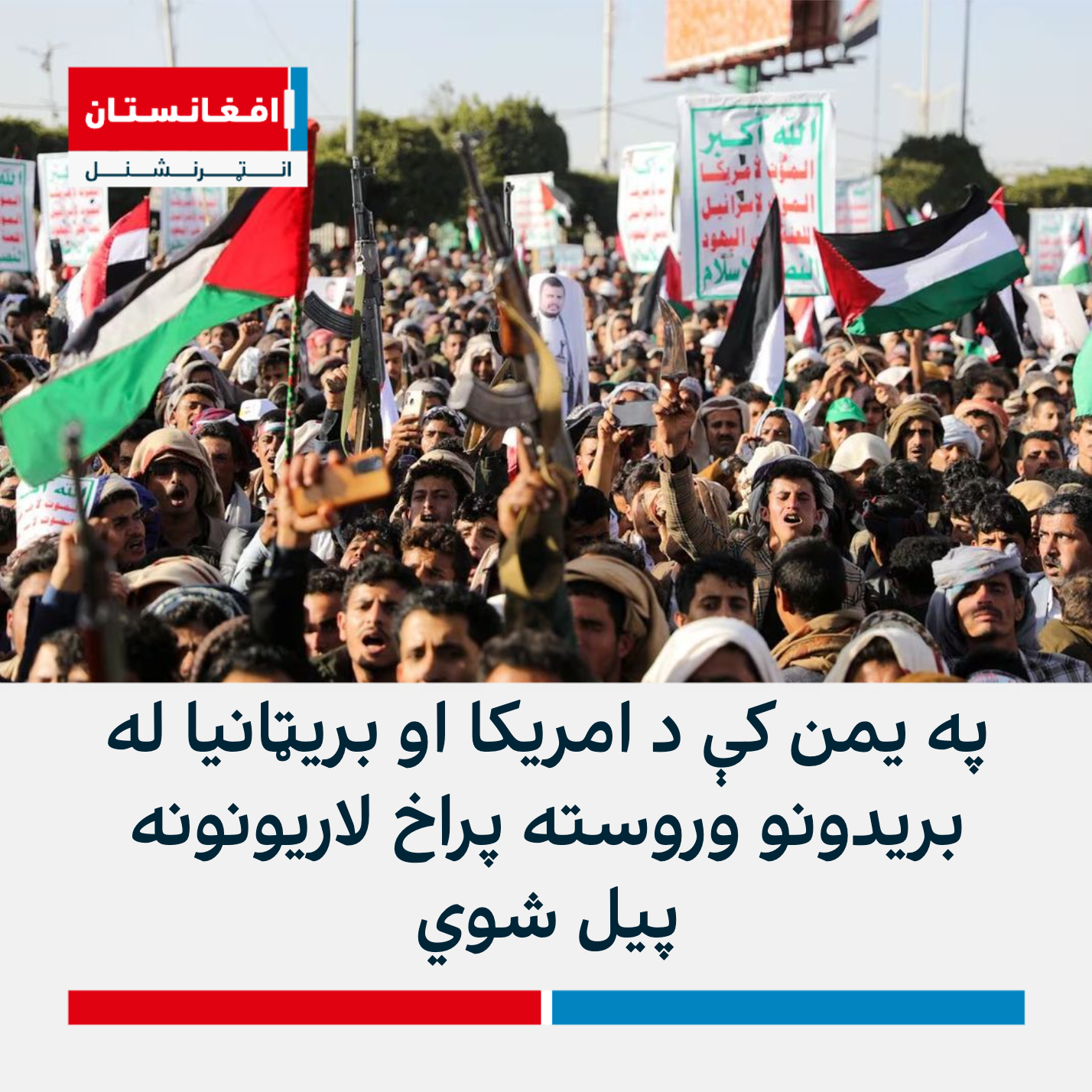 په لسګونو زره یمنیان د جمعې په ورځ - د مرغومې ۲۲ مه - په څو ښارونو کې لاریونونه کړي او په سره سمندرګي کې په بیړیو د حوثي وسله والو د بریدونو په ځواب کې یې په دغه هېواد د امریکا او بریټانیا بریدونه غندلي دي.