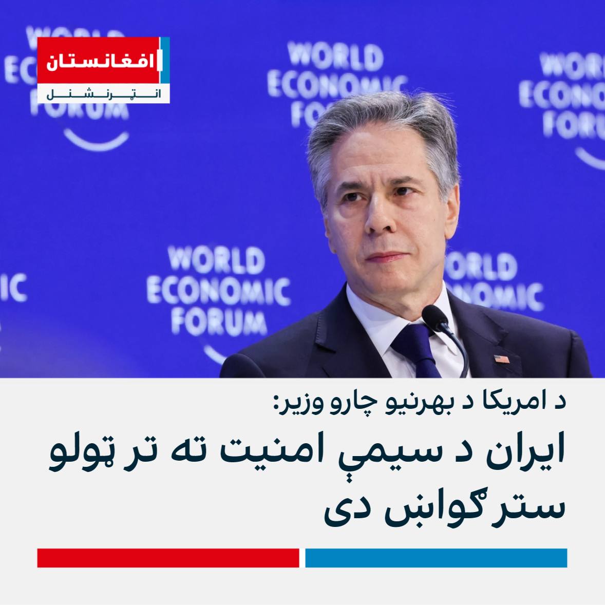 د سوېس د داووس د نړۍوال اقتصادي فورم په څنډه کې د امریکا د بهرنیو چارو وزیر انټوني بلېنکن ویلي، چې ایران «د سیمې امنیت ته ستر ګواښ» دی.