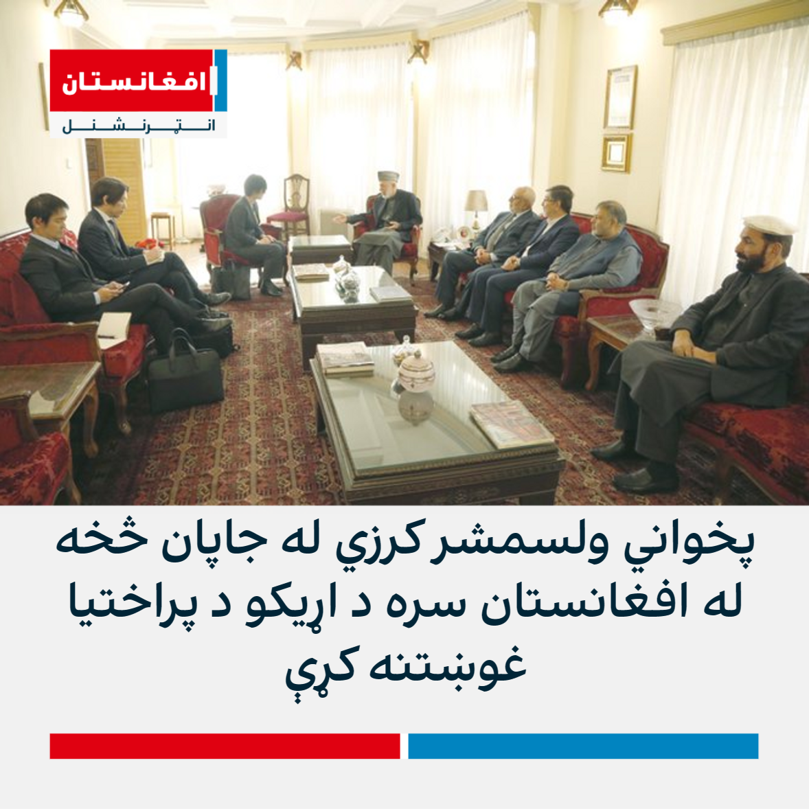پخواني ولسمشر حامد کرزي د افغانستان لپاره د جاپان د ځانګړي استازي له مرستیالې میساکو تکاهاشي سره لیدلي او له نوموړې سره په خبرو کې یې د زده کړو او صحت په برخه کې د جاپان له مرستو مننه کړې ده.