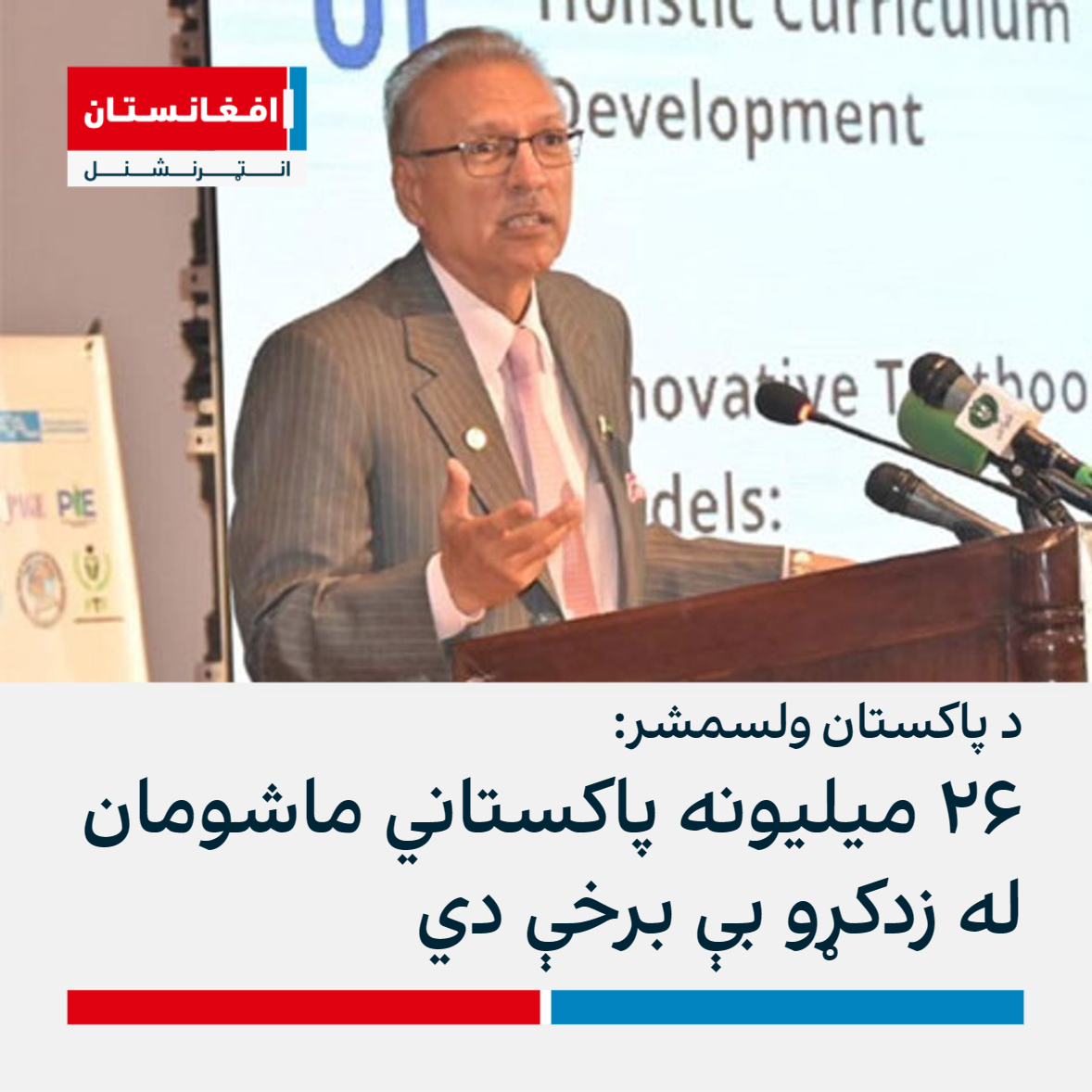 د پاکستان ولسمشر د زدکړو نړۍوالې ورځې په مناسبت په یوې غونډې کې وویل؛ په دغه هېواد کې تر ۲۶ میلیونو ماشومان له ښوونځي بې برخې دي.
