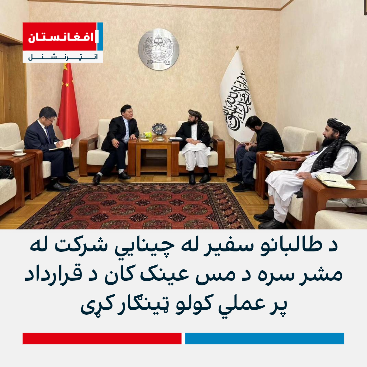 په چين کې د طالبانو استازي د چنيايي دولتي شرکت د مشر سره په لېدنه کې د مس عینک کان د قرار داد پر عملي کولو او دوه اړخيزه همکاريو ټينګار کړی.