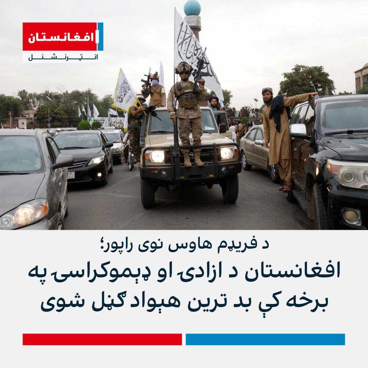 فریډم هاوس لیکلي: "د افغانستان د منتخب حکومت له نسکورېدو راهیسې (د ۲۰۲۱ کال د اګست په نیمایي کې) د طالبانو ډلې د هېواد سیاسي فضا بنده کړې ده، د نوي رژیم له خوا له خپل حکومت سره مخالفت نه ښيي او د ښځو او اقلیتونو حقونه محدود شوي دي."