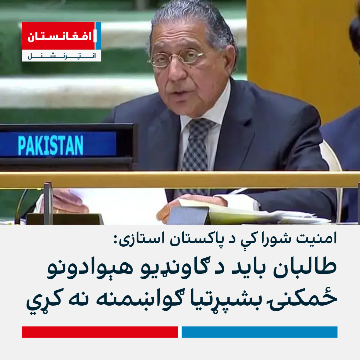 په ملګرو ملتونو کې د پاکستان سفیر د چهارشنبې په ورځ د امنیت شورا په غونډه کې له طالبانو وغوښتل، چې د ګاونډیو هېوادونو ملي حاکمیت او ځمکنۍ بشپړتیا ته ګواښ پېښ نه کړي.