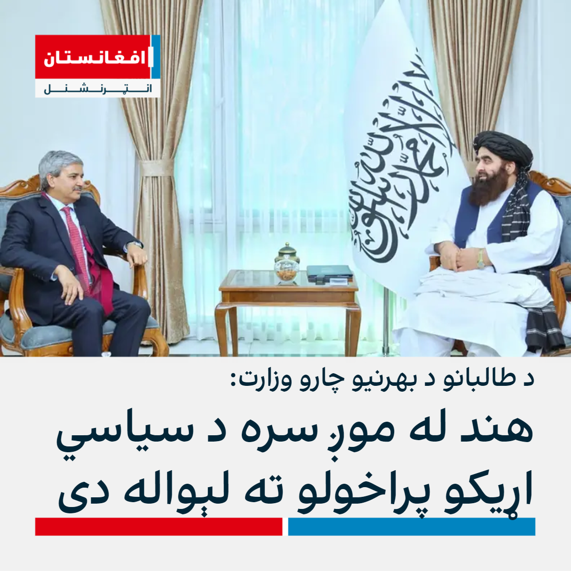 د طالبانو د بهرنیو چارو وزیر امیر خان متقي په کابل کې د هند د بهرنیو چارو د وزارت د افغانستان او پاکستان د څانګې له مشر جې پي سېنګ سره وکتل.