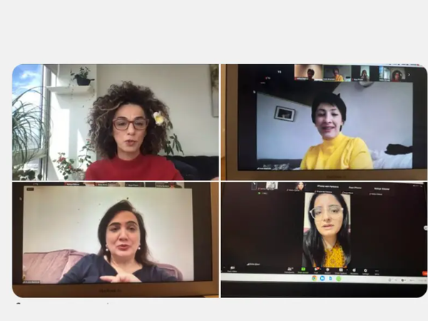 په هغه انځور کې چې هدا خموش د دې انلاین ناستې په اړه خپور کړی، لیدل کېږي، چې په دې غونډه کې د افغانستان د ولسي جرګې پخوانۍ غړې شکریه بارکزۍ او د ایران د اسلامي جمهوریت د اپوزیسیون فعاله مسیح علي نژاد هم حضور درلود.