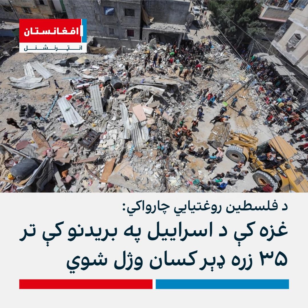 د فلسطین روغتیايي چارواکي وايي، په غزه کې اسراییل په ځمکني او هوايي بریدونو کې تر ۳۵ زره ډېر کسان وژلي، چې ډېری یې ښځې او ماشومان دي.