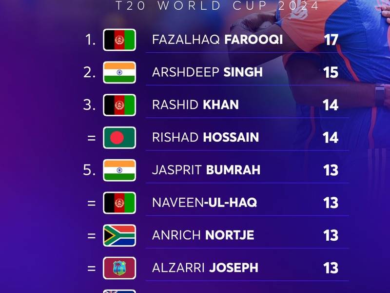 تر فاروقي وروسته تر دې دمه د هند ارش دیپ د ۱۵ وېکټو په اخیستو سره دویم، راشدخان د ۱۴ وېکټو په اخیستو سره درېیم او نوین الحق بیا د ۱۳ وېکټو په اخیستو سره د دغه نوملړ شپږم مقام خپل کړی دی.