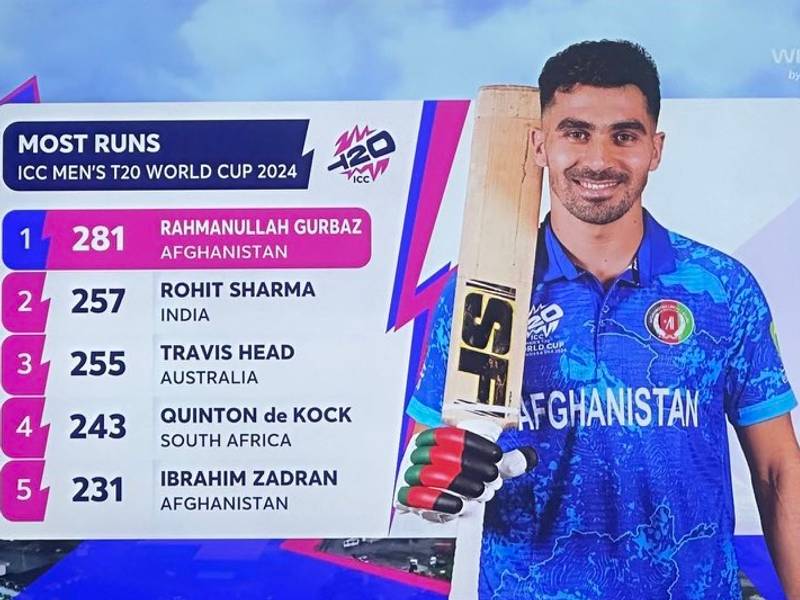په دغه نوملړ کې د افغانستان پیلیز لوبغاړي رحمان الله ګربز د ۲۸۱ منډو په جوړولو سره تر ټولو مخکښ دی او د نوملړ لومړی ځای ځایګی یې خپل کړی دی.