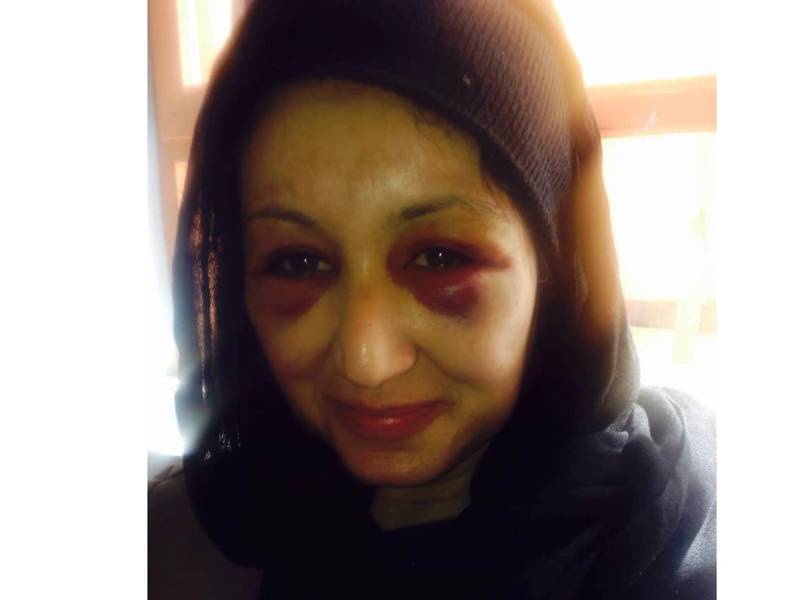 د اغلې یزدانپرست له خوا افغانستان انټرنشنل ته په ورکړل شويو انځورونو کې ښکاري، چې د هغې مخ او بدن د شکنجې له امله شنه شوي دي.