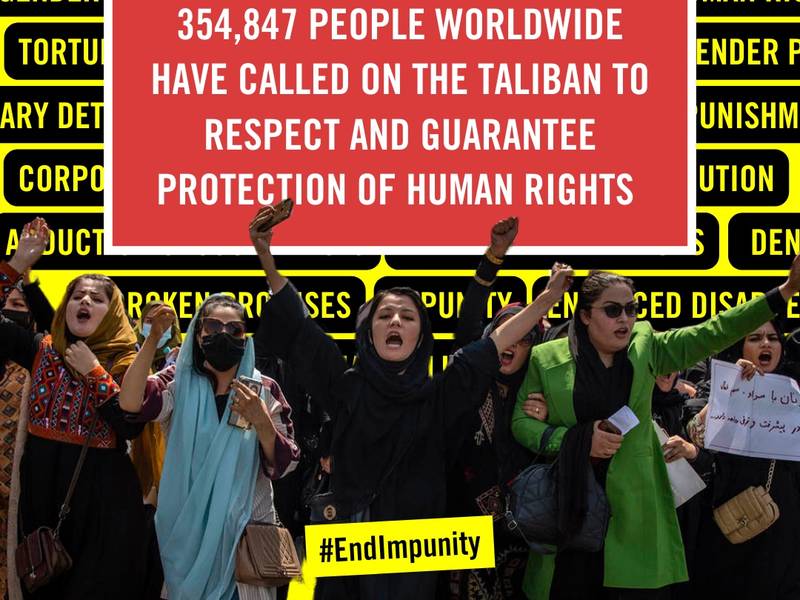 دغه سازمان له دې څخه یوه ورځ وړاندې هم ویلي وو، چې په ټوله نړۍ کې څه باندې ۳۵۰ زره کسانو د یو غوښتنلیک په لاسلیکولو سره له طالبانو یې غوښتي چې بشري حقونو ته درناوی وکړي.