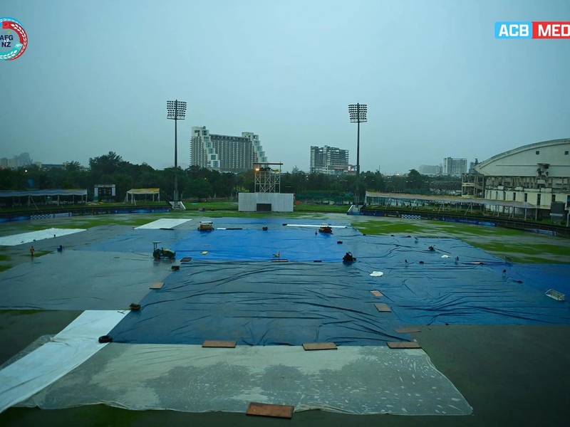 د افغانستان کرېکټ بورډ له ګرېټر نوېډا څخه یوه ویډیو خپره کړې، چې لیدل کېږي، په لوبغالي کي شدید باران ورېږي.