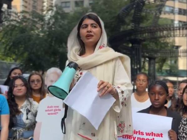 د سولې د نوبل جایزې ګټونکې ملالې یوسفزۍ په خپله اېکس پاڼه لیکلي، چې تېره ورځ یې د ملګرو ملتونو د ودانۍ مخې ته له نورو ښځينه فعالانو سره یو ځای د نړۍ له مشرانو څخه غوښتي چې د نجونو غږ واوري.