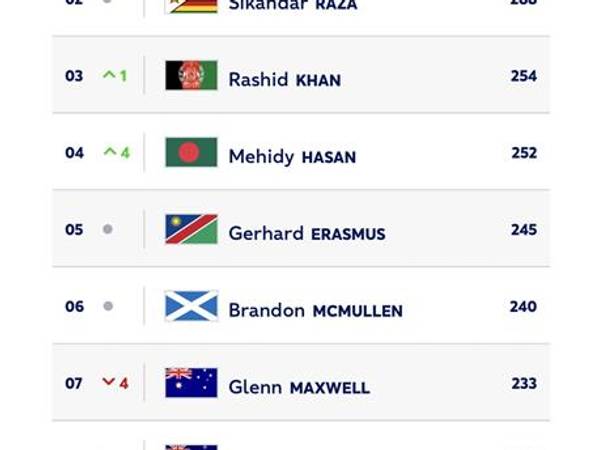 په دغه تازه خپور شوي نوملړ کې محمدنبي لومړی ځای، راشدخان درېیم ځای او عظمت الله عمرزي نهم ځای خپل کړی دی.