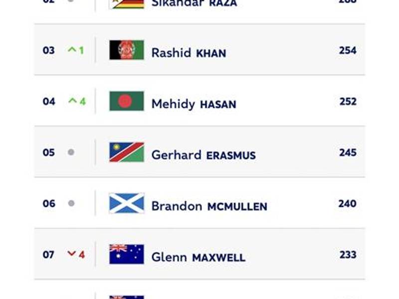 په دغه نوملړ کې د زمبابوې لوبغاړی سکندر رضا بیا دویم ځای خپل کړی دی.