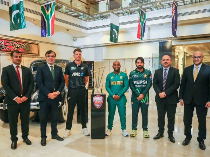 د پاکستان کرېکټ بورډ خبر ورکړی، چې د شنبې په ورځ د پاکستان په کوربتوب د نیوزېلنډ او سويلي افریقا لوبډلو ترمنځ د درې اړخيزو یو ورځنیو سياليو لړۍ پيلوي.