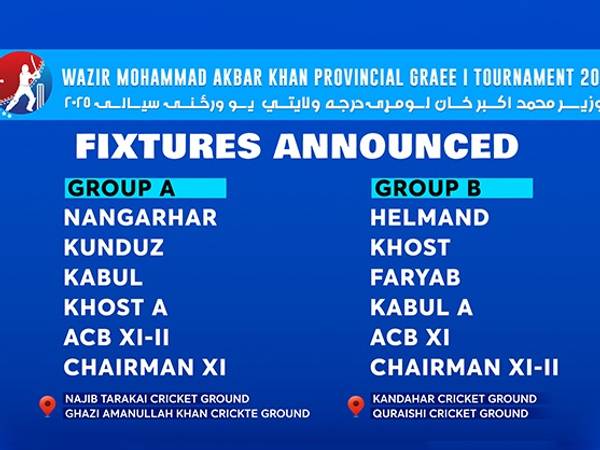 د افغانستان کرېکټ بورډ د لوبغاړو د غوراوي کمېټې نن د ۱۶م پړاو وزیر محمد اکبر خان لومړۍ درجه ولایتي سیالیو لپاره د ګډون کوونکو ۱۲ لوبډلو نوملړونه وټاکل.