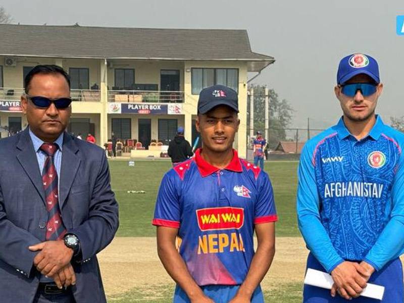 د افغانستان د ۱۹کلنو کرېکټ ملي لوبډلې د نیپال پر وړاندې د لوبې پچه وګټله او لومړی توپ وهنه کوي.
