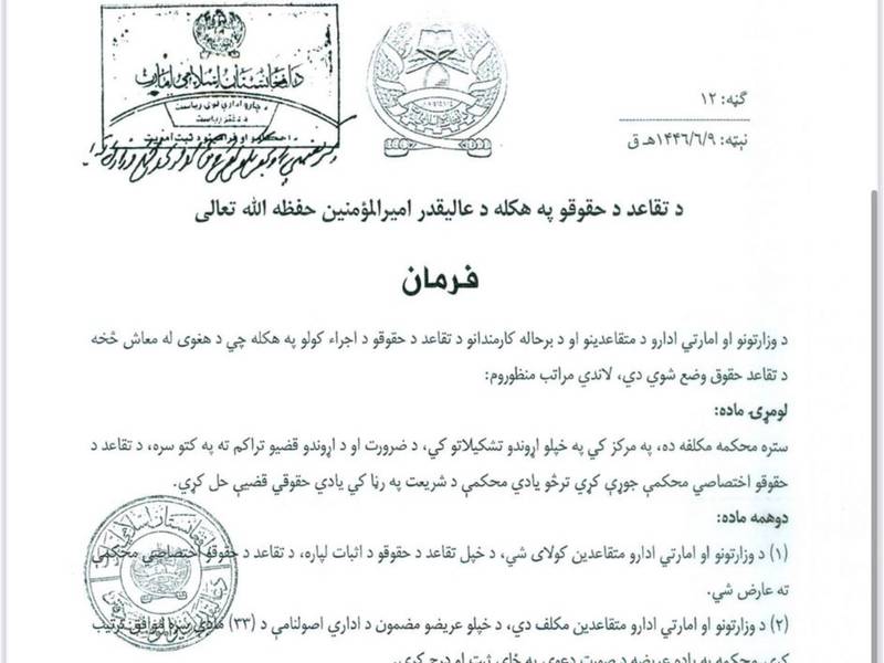 دوی له افغانستان انټرنشنل سره د ملا هبت الله فرمان یوه کاپي هم شریکه کړه.
