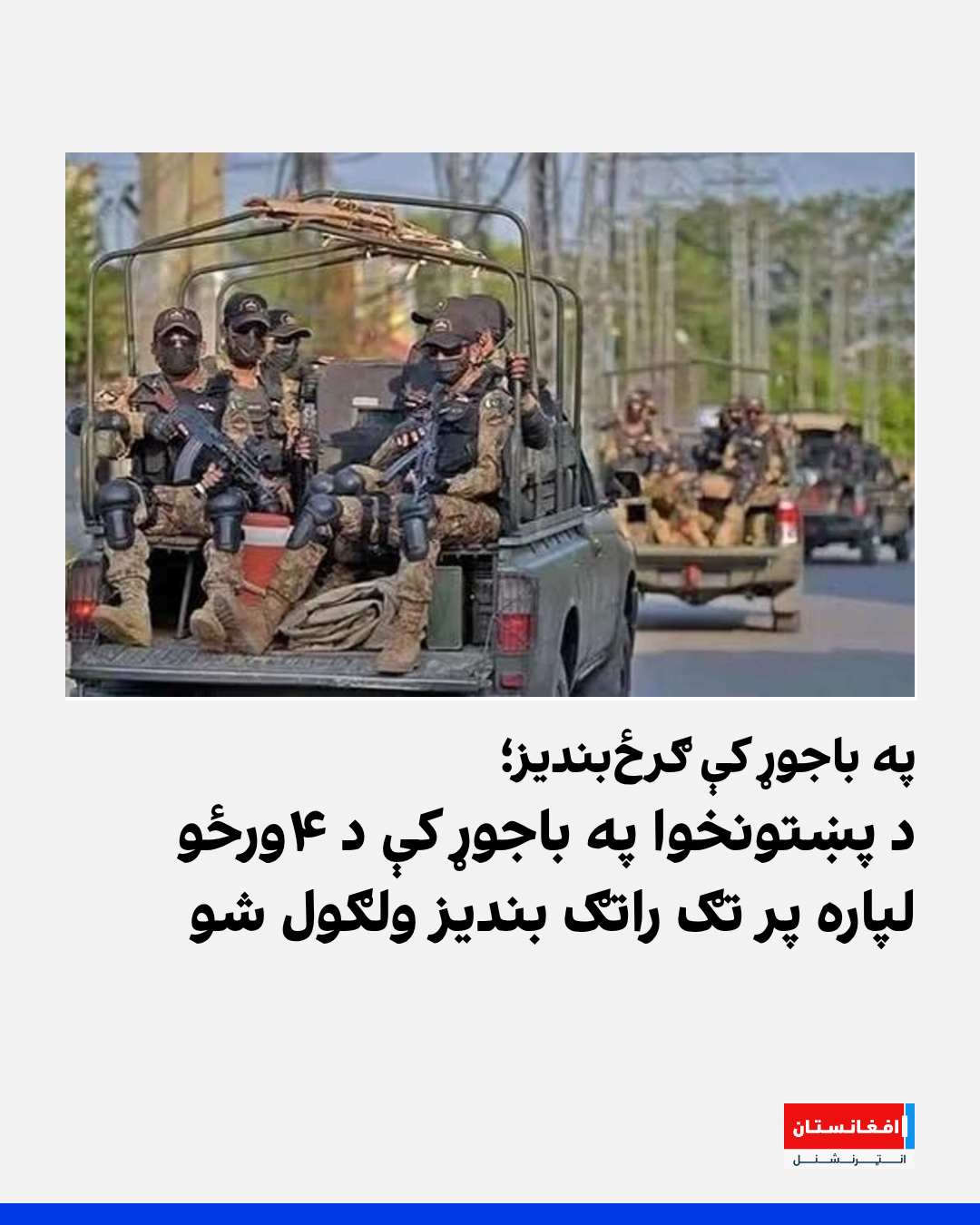 د خیبر پښتونخوا د باجوړ ولسوالۍ چارواکو یکشنبه (د زمري ۱۹مه) اعلان کړی، چې د دغې ولسوالۍ په بېلابېلو سیمو کې به د ۴ ورځو لپاره پر تګ راتګ بندیز وي. دغه ګرځبندیز به نن (د زمري په ۲۰مه) پيل شي.
