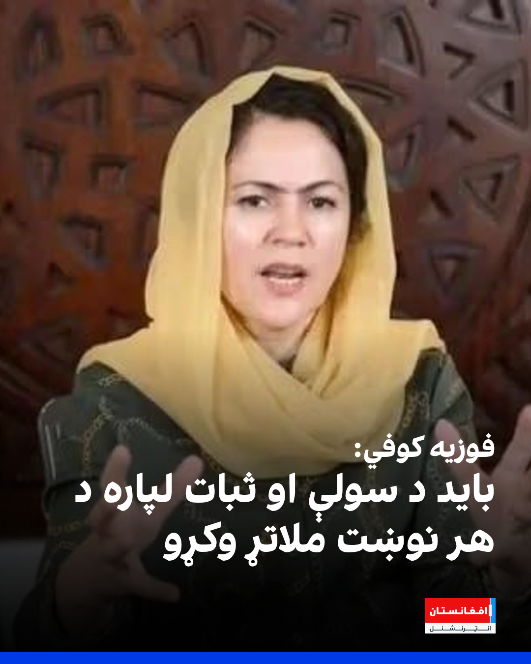 د افغانستان د ولسي جرګې پخوانۍ غړي فوزیه کوفي یکشنبه (د زمري ۲۶مه) پر خپله ایکس پاڼه لیکلي، چې باید مدني ټولنې په خپله د ښځو د ستونزو د حل لپاره خبرې وکړي. کوفي زیاته کړې، که د سیمې هېوادونه دې خبرو ته زمینه برابره کړي دا به یو مثبت ګام وي.