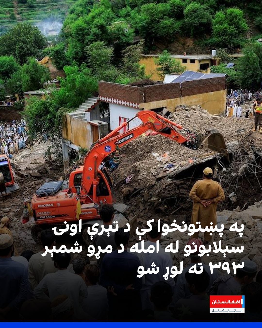 په پښتونخوا کې د تېرې اونۍ سېلابونو له امله د مړو شمېر ۳۹۳ ته لوړ شو. د خیبرپښتونخوا د طبیعي پېښو د مدیریت ایالتي ادارې خبرداری ورکړی، چې د اګست له ۲۲مې څخه تر ۲۶مې نېټې د نورو ورښتونو اټکل هم کېږي.