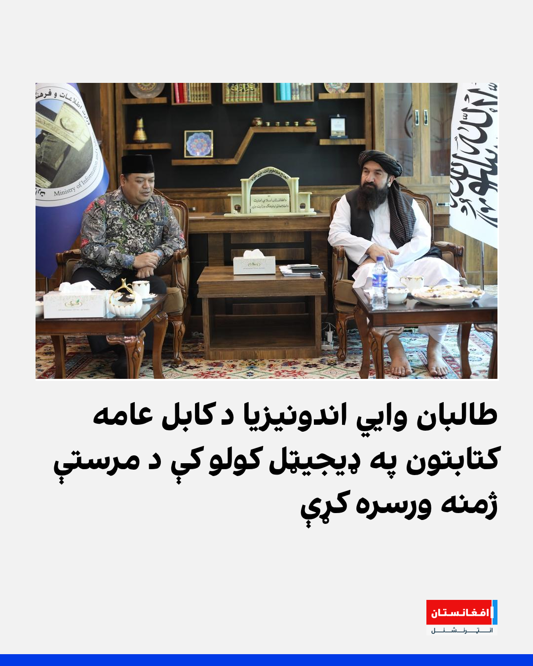 د طالبانو د اطلاعاتو او کلتور وزارت وايي چې په کابل کې د اندونیزیا شارژدافیر نندا ایوالیست ددغه وزارت له وزیر خیرالله خیرخواه سره د لیدنې پرمهال ژمنه کړې، چې د عامه کتابتون د ډیجټلایزیشن په موخه د تخنیکي وسایلو مرسته کوي.