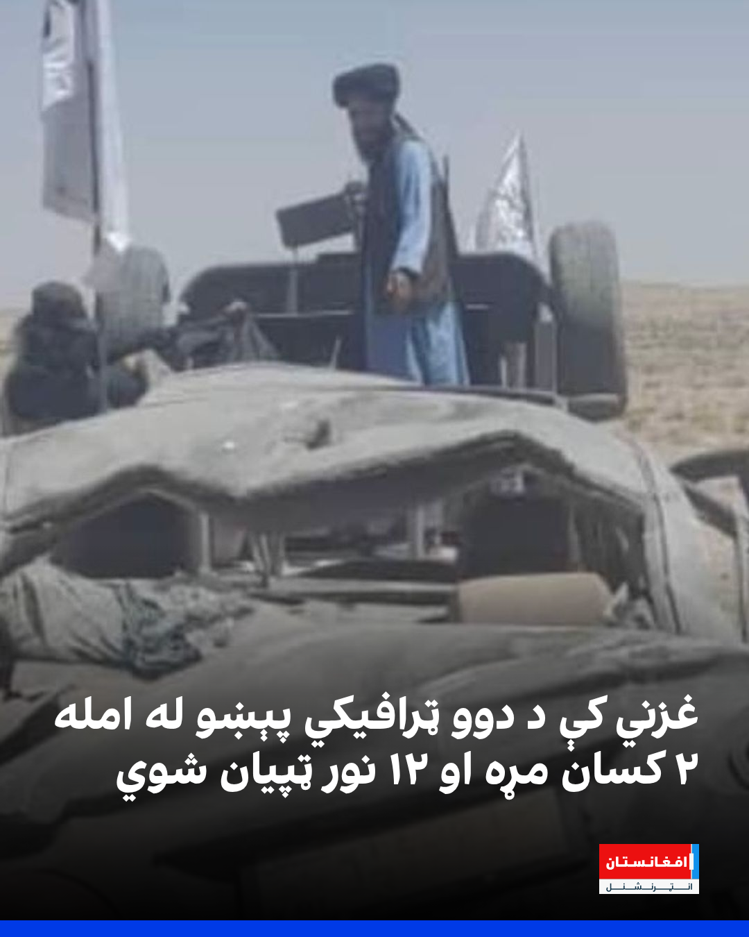 په غزني کې د طالبانو د امنیې قوماندانۍ ویاند خالد سرحدي وایي چې د دغه ولایت په مرکز او اب بند ولسوالۍ کې د دوو جلا ټرافیکي پېښو پر مهال ۲ کسان مړه شوي او ۱۲ نور ټپیان دي. هغه ویلي، د دې دواړو پېښو لامل د موټرچلوونکو بېاحتیاطي وه.