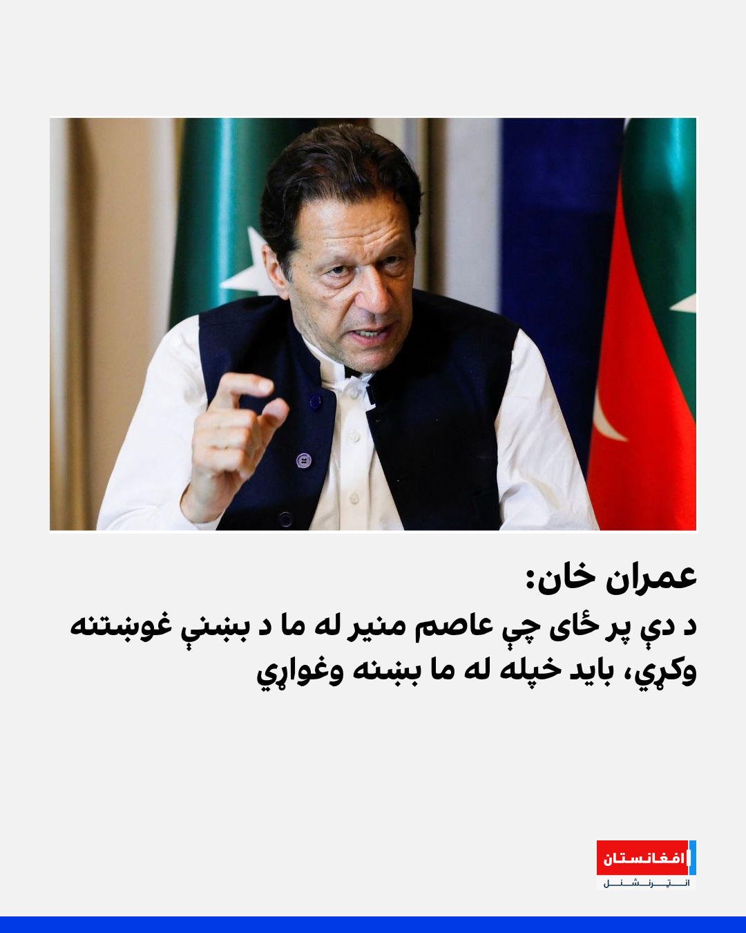 عمران خان زیاته کړې، چې په وروستیو کې د امریکا ولسمشر ډونالډ ټرمپ هم د لومړي وزیر شهباز شریف پر ځای عاصم منیر ته بلنه ورکړې وه، چې دا د پاکستان د اوسني سیاسي وضعیت څرګندونه کوي.