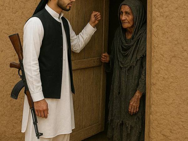بوډۍ: (په ژیړغوندي اواز) ډوډۍ له کومه شوه، یوه میاشت کېږي چې پاکستان راشړلي یو، دا کنډواله کور د بل دی، کونډه ښځه یمه، کوچني یتیمان راپاتې دي، یو ځوان زوی لرم هغه ته کار نه ورپیدا کېږي، خدای مو دا سپېره حکومت ورک کړه.