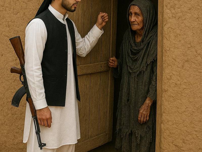 بوډۍ: (په قهر) حکومت چې غریب ته ډوډۍ ور نه کړي، د کونډې او یتیم پوښتنه و نه کړي، څوک یې څه په بلا وهي؟ ارواوږو تاسې که پاچهان سئ بیا مو هم نس زموږ د غاړي دی.