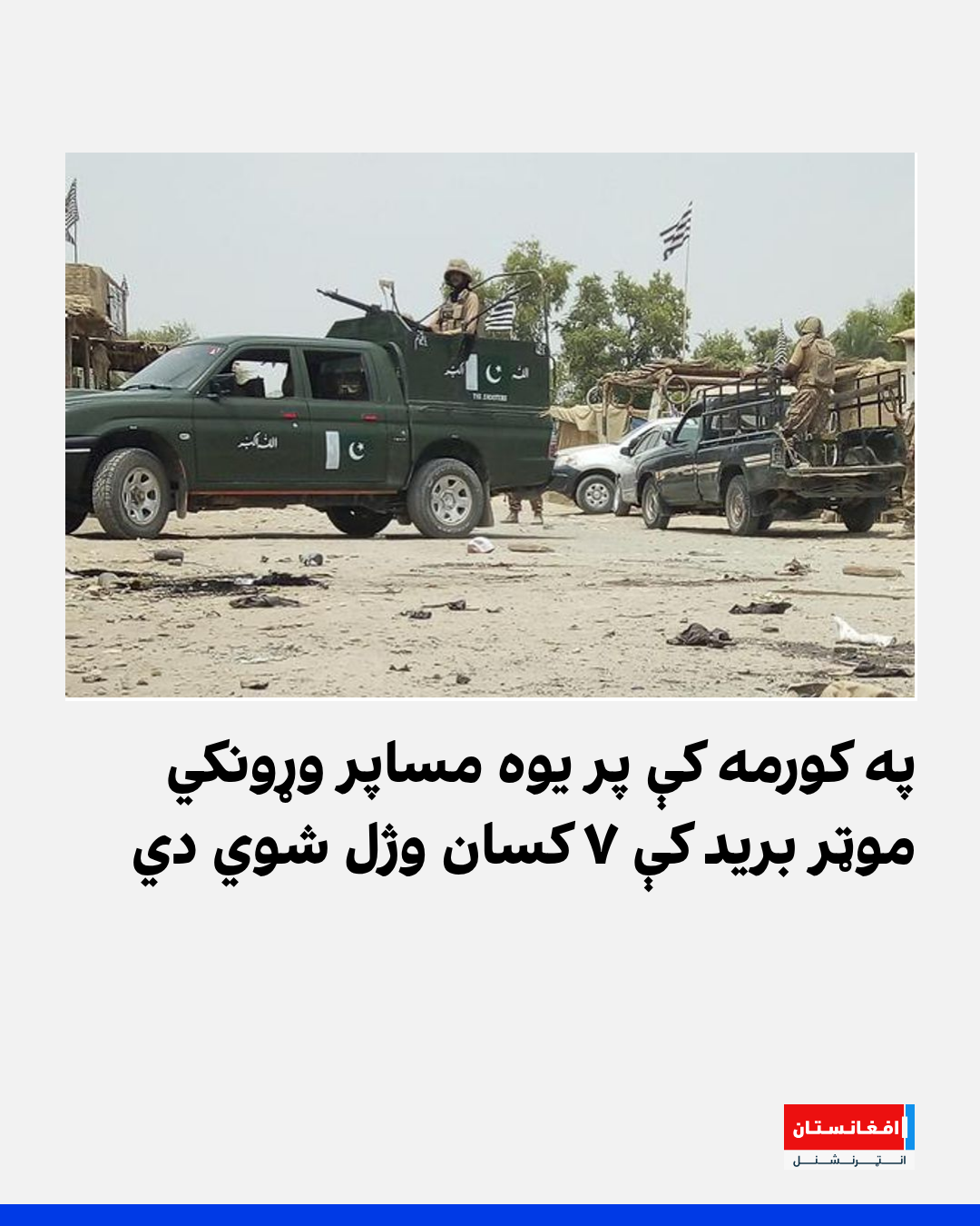 د خیبر پښتونخوا په کورمه کې پر یوه مساپر وړونکي موټر د ناپېژانده وسلهوالو په برید کې ۷ کسان وژل شوي دي. پېښه د کورمې په املکوټ سیمه کې شوې، چې دغه سیمه تر دې وړاندې هم د فرقهیي تاوتریخوالي شاهده پاتې شوې ده.