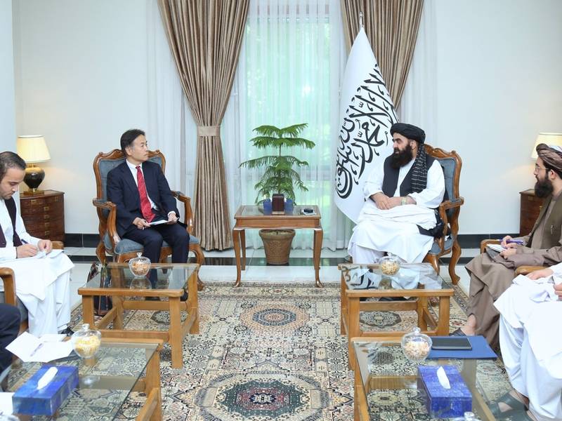 د طالبانو د بهرنیو چارو وزارت په افغانستان کې د جاپان له سفیر تاکويوشي کورمايا سره ددې ډلې د بهرنيو چارو وزير امیرخان متقي د مخه ښې ليدنې خبر ورکړی.