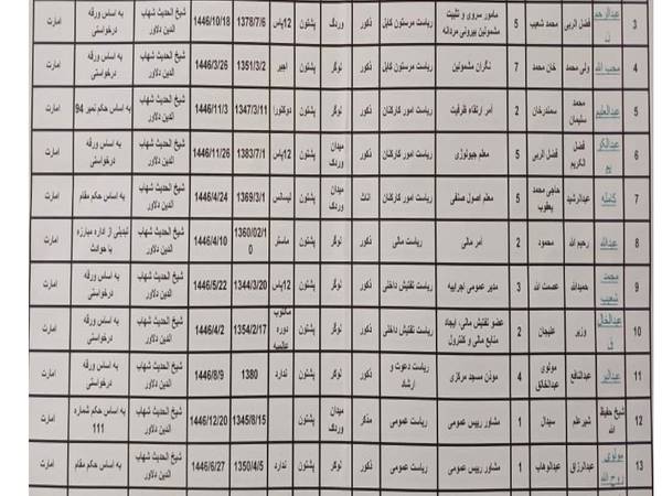 افغانستان انټرنشنل ته رسېدلي سندونه ښيي، چې د طالبانو د افغاني سرې میاشتې ټولنې رییس شهاب الدین دلاور په دې اداره کې ډیری خپل نږدې خپلوان او د لوګر او میدان وردګ ولایتونو اوسېدونکي ګومارلي دي.