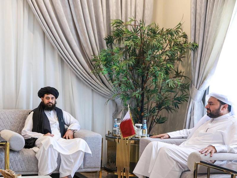 د طالبانو دفاع وزیر محمد یعقوب مجاهد قطر ته د خپل رسمي سفر په ترڅ کې د یاد هېواد د بهرنیو چارو وزیر دکتور محمد بن عبدالعزیز الخلیفي سره لیدلي دي.