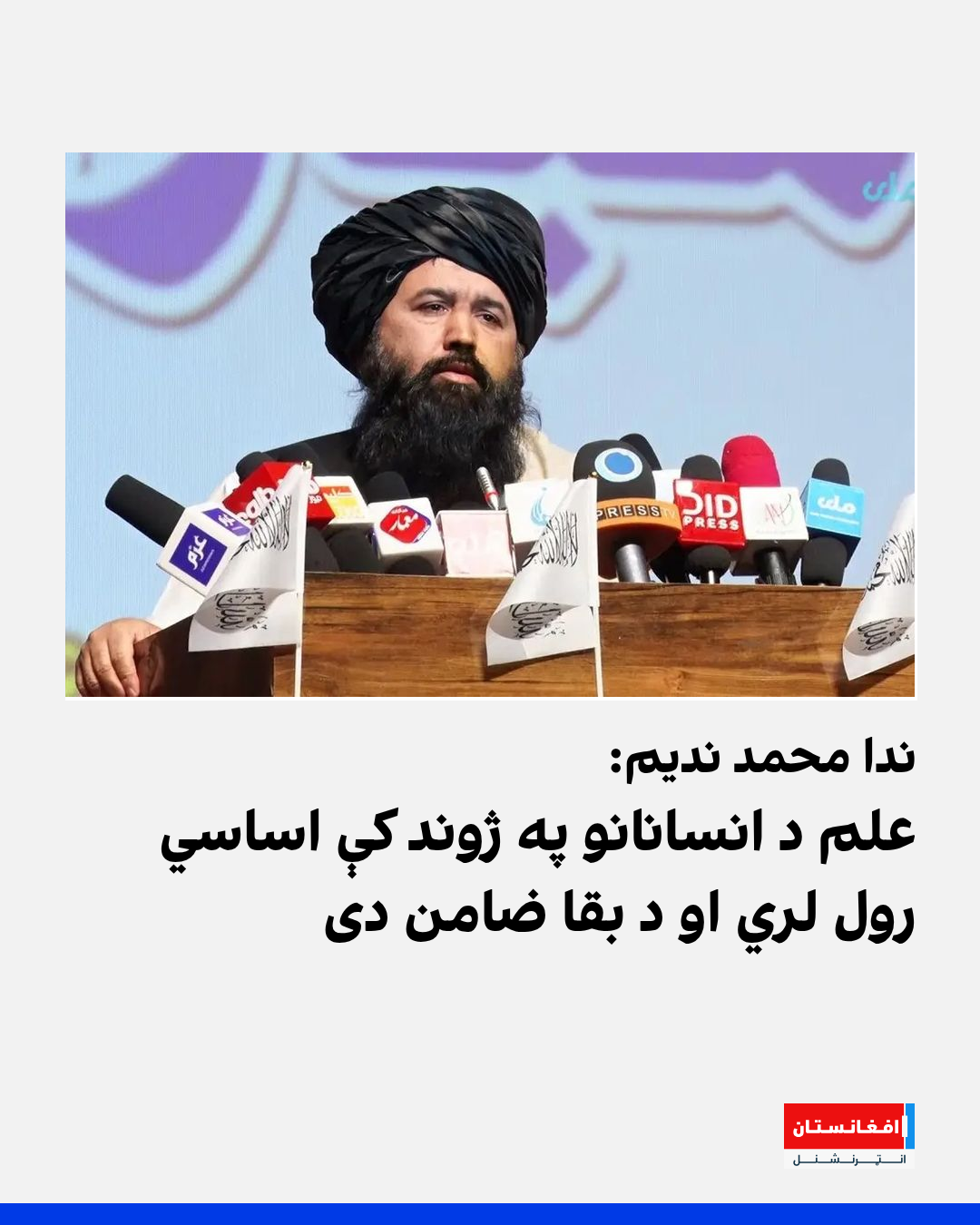 د طالبانو د لوړو زده کړو وزارت سرپرست ندا محمد ندیم چې دغه وزارت ته په رسېدو سره یې له لوړو زده کړو نجونې منع کړې، وايي چې پوهه د انسانو په ژوند کې اساسي رول لري او د بقا ضامن دی او په وینا یې، «هر کله چې علم له منځه لاړ شي، دنیا هم ورسره لمنځه ځي.»