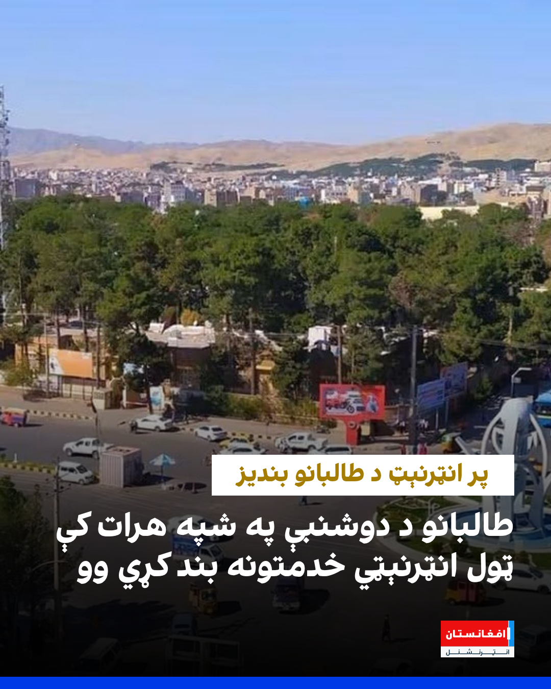په هرات کې د انټرنېټي خدمتونو وړاندې کوونکو شرکتونو د طالبانو په امر بېګاه شپه له ۸ بجو څخه د سېشنبې سهار تر اتو بجو پورې ټول انټرنېتي خدمتونه بند کړي و.
