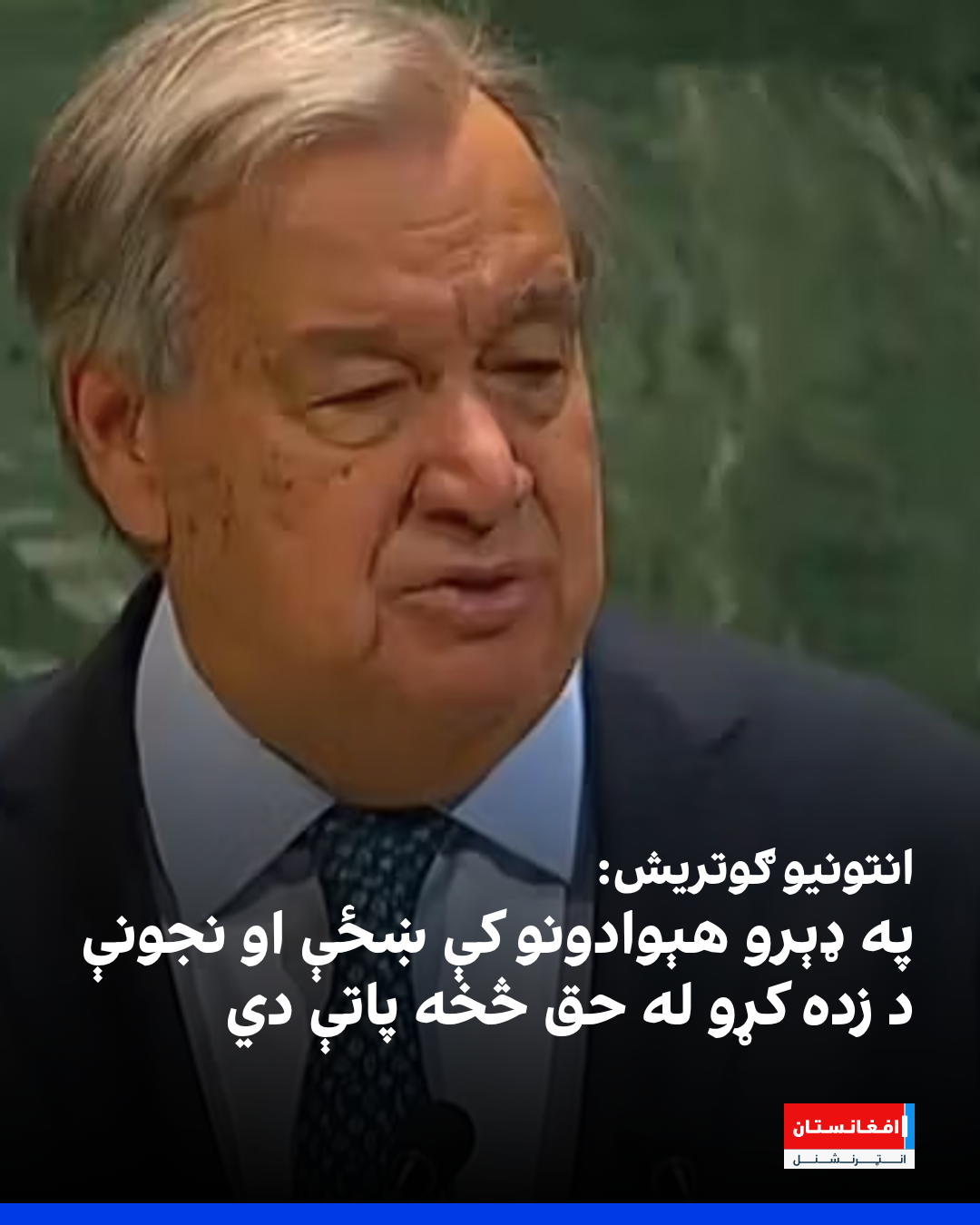 د ملګرو ملتونو سرمنشي انټونیو ګوتریش د ملګرو ملتونو په ۸۰مه عمومي غونډه کې د افغانستان له یادولو پرته وویل، چې په ډېرو هېوادونو کې ښځې او نجونې د زده کړو له حق څخه پاتې دي. هغه دغه راز وویل، چې د جرمونو نړیواله محکمه باید په غزه کې د نسل وژنې په اړه عاجل اقدام وکړي.