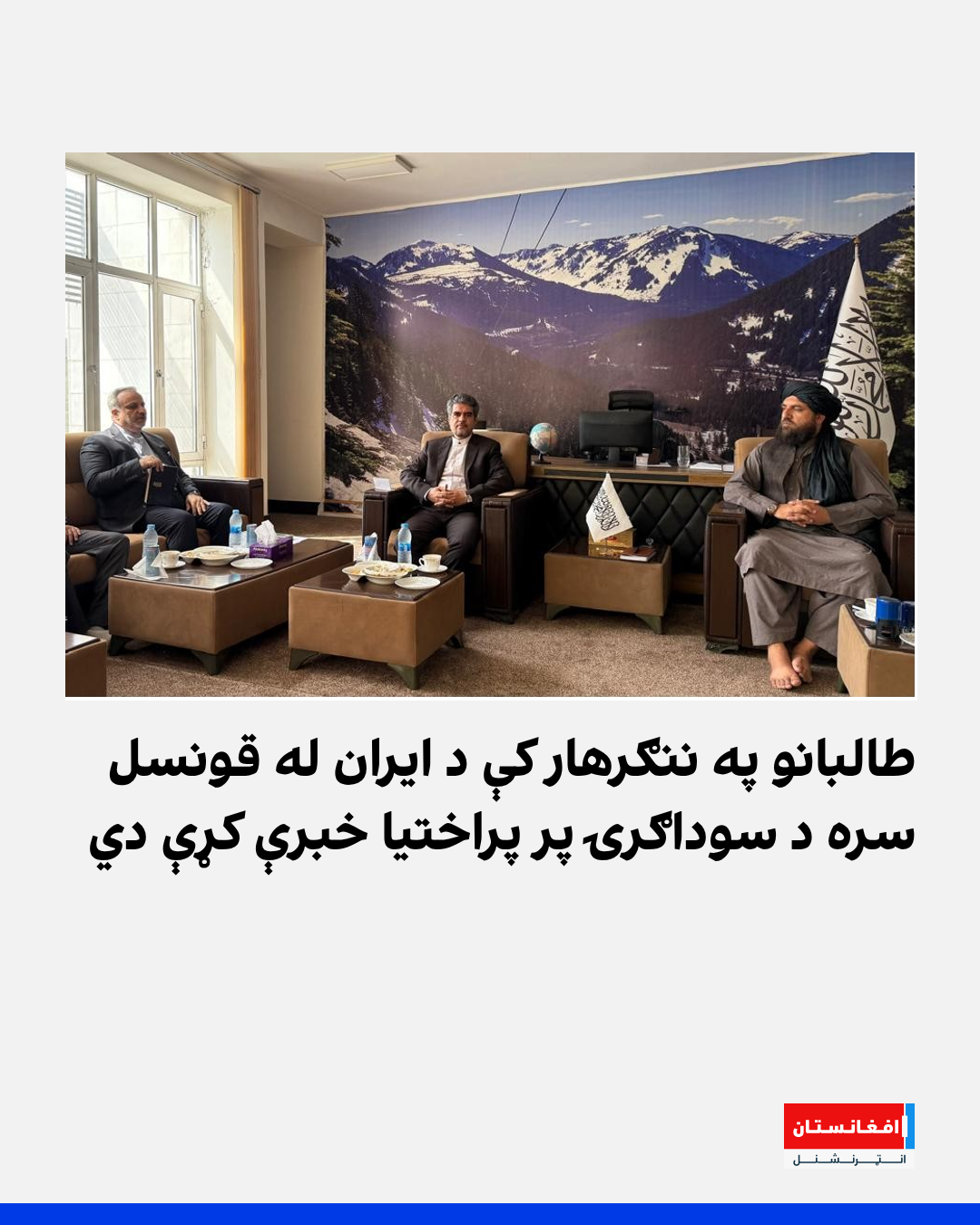 په ننګرهار ولایت کې د طالبانو د بهرنيو چارو ریيس جان محمد انقلابي د دغه ولایت لپاره د ایران نوي قونسل مجيد رضا پناه سره په ناسته کې د سوداګرۍ پر پراختيا او د ويزو د ورکړې پر اسانتياوو خبرې کړې دي.