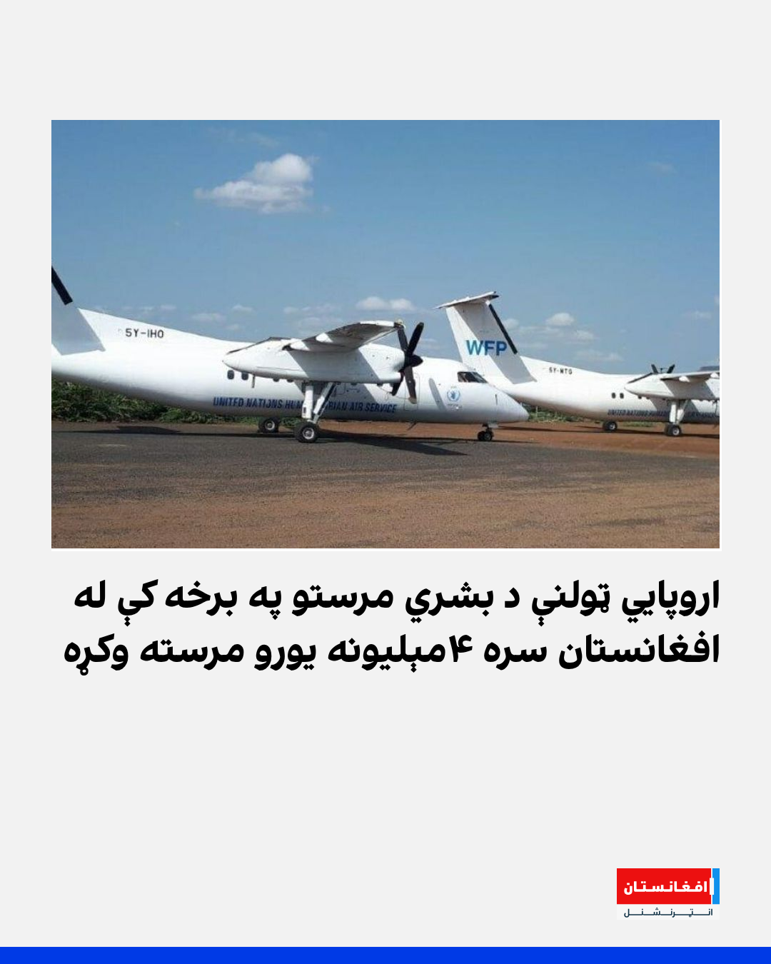 د ملګرو ملتونو د خوړو نړۍوال پروګرام د ملګرو ملتونو د بشرپاله هوايي خدمتونو سره د اروپايي ټولنې له مرستې هرکلی کړی دی. د خوړو نړۍوال پروګرام د یوې خبرپاڼې په خپرولو سره ویلي، چې اروپايي ټولنې د بشري مرستو په برخه کې له افغانستان سره ۴مېلیونه یورو مرسته کړې ده.