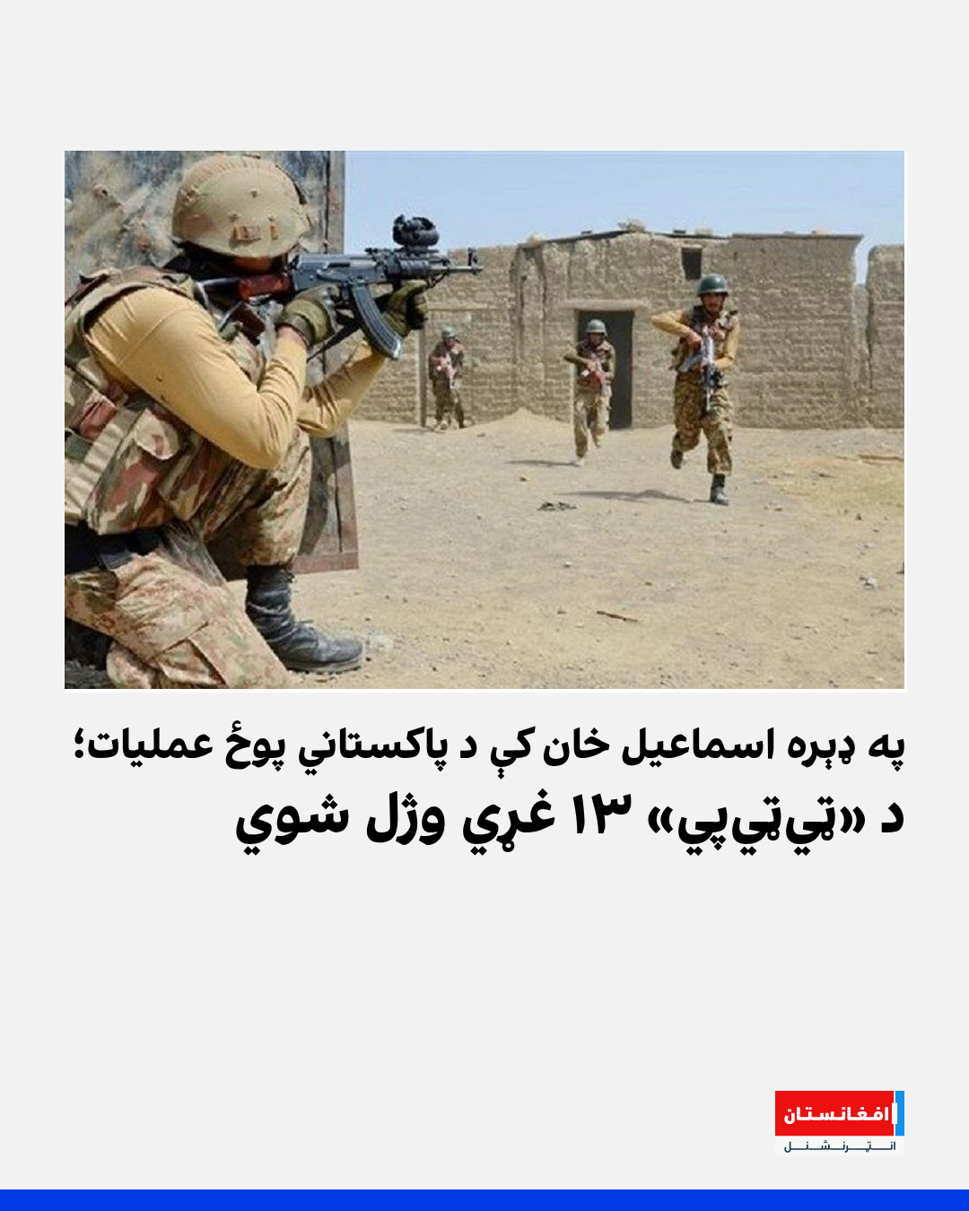 د پاکستان پوځ د عامه اړیکو څانګې (ای اېس پي ار) د ډېره اسماعیل خان د درابن په سیمه کې د امنیتي ځواکونو په عملیاتو کې د تحریک طالبان پاکستان (ټيټيپي) د ۱۳غړو د وژل کېدو خبر ورکړ.