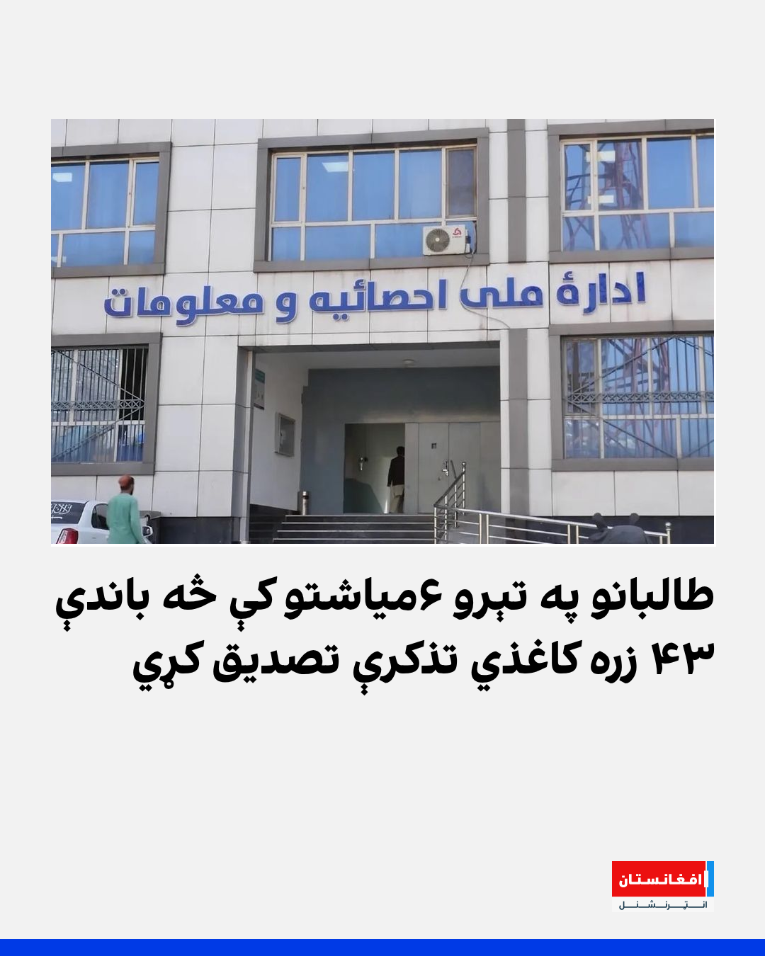 د احصایې او معلوماتو اداره وايي چې په تېرو شپږو میاشتو کې یې په حضوري ډول د ۲۵ زره کسانو او په انلاین بڼه د څه باندې ۱۷ بهرمیشتو افغانانو د کاغذي تذکرو تصدیق کړی.