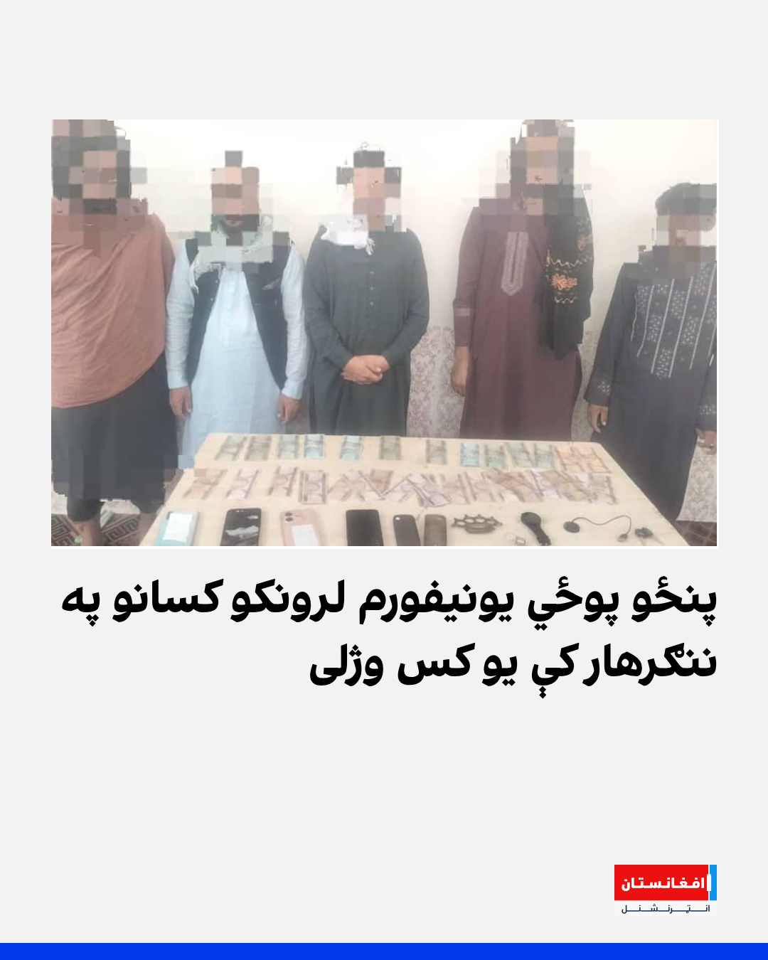 د ننګرهار ولایت لپاره د طالبانو د امنیه قومندانۍ ویاند سید طیب حماد وايي، دغه کسان د شنبې په ورځ (د تلې ۱۲مه) د امنیتي ځواکونو له لوري نیول شوي او له دوی څخه له غلا کړیو یوه اندازه پیسې، یو چرییز ټوپک او نور توکي ترلاسه شوي دي.