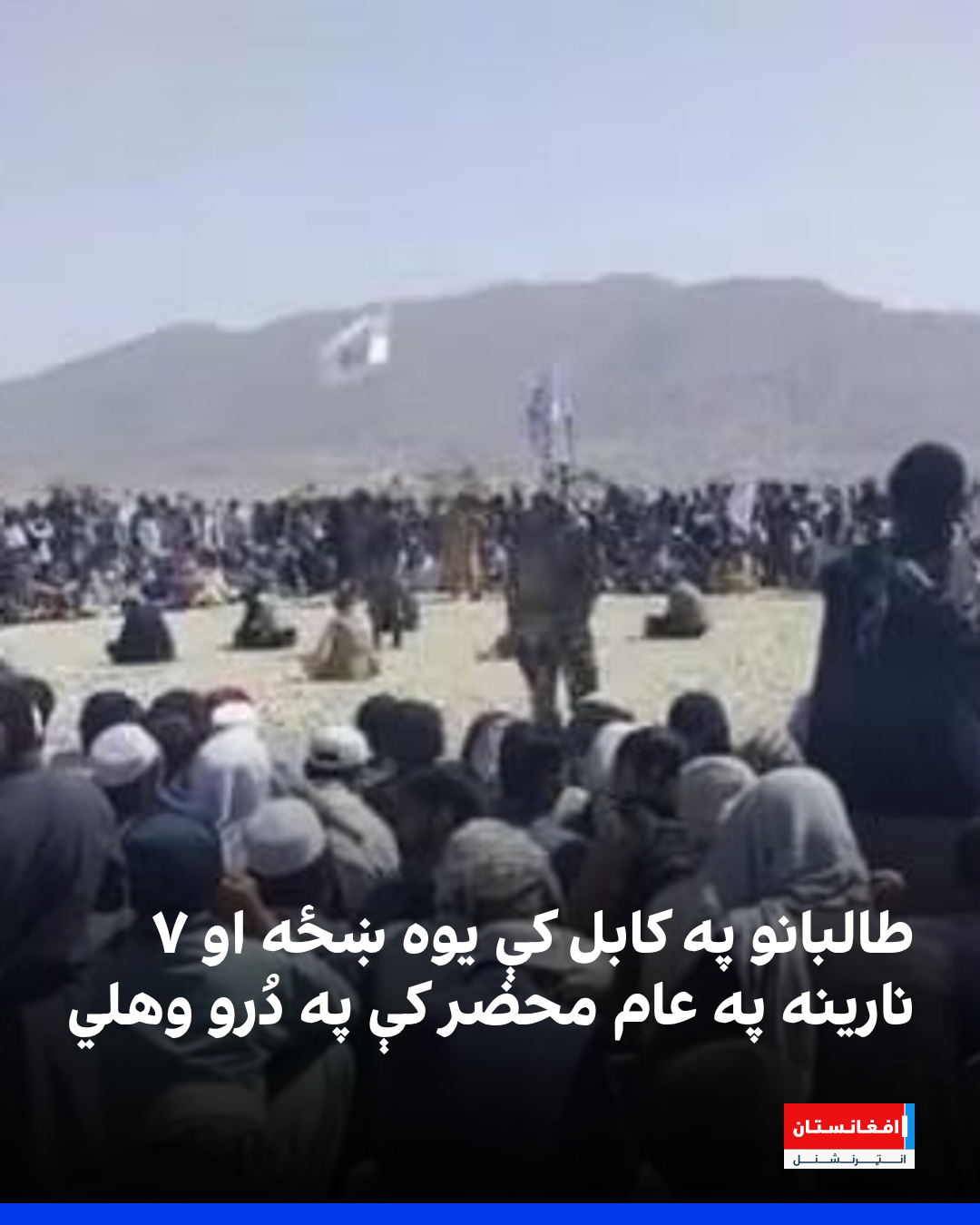 د طالبانو ستره محکمه وايي، په کابل کې یې یوه ښځه له کوره د «تېښتې» او ۷ نارینه د نشه يي توکو د خرڅلاو او قاچاق په تور په عام محضر کې په دُرو وهلي دي.