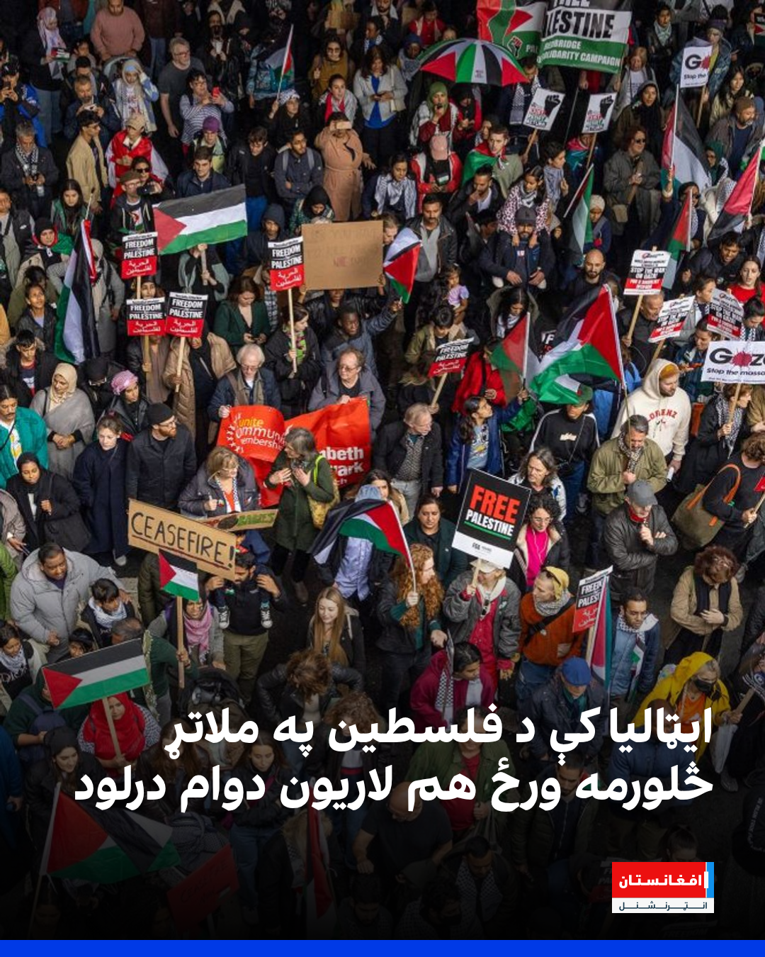 د شنبې په روځ سلګونه زره کسانو د ایټالیا په روم ښار کې د فلسطین په ملاتړ لاریون ته راوتلي وو او د «فلسطین ازاد کړئ» شعارونه یې ورکول. د لاریون د تنظیموونکو په وینا، یو مېلیون کسانو ګډون کړی وو؛ خو پولیسو ویلي چې یوازې ۲۵۰زرو تنو برخه اخیستې وه.