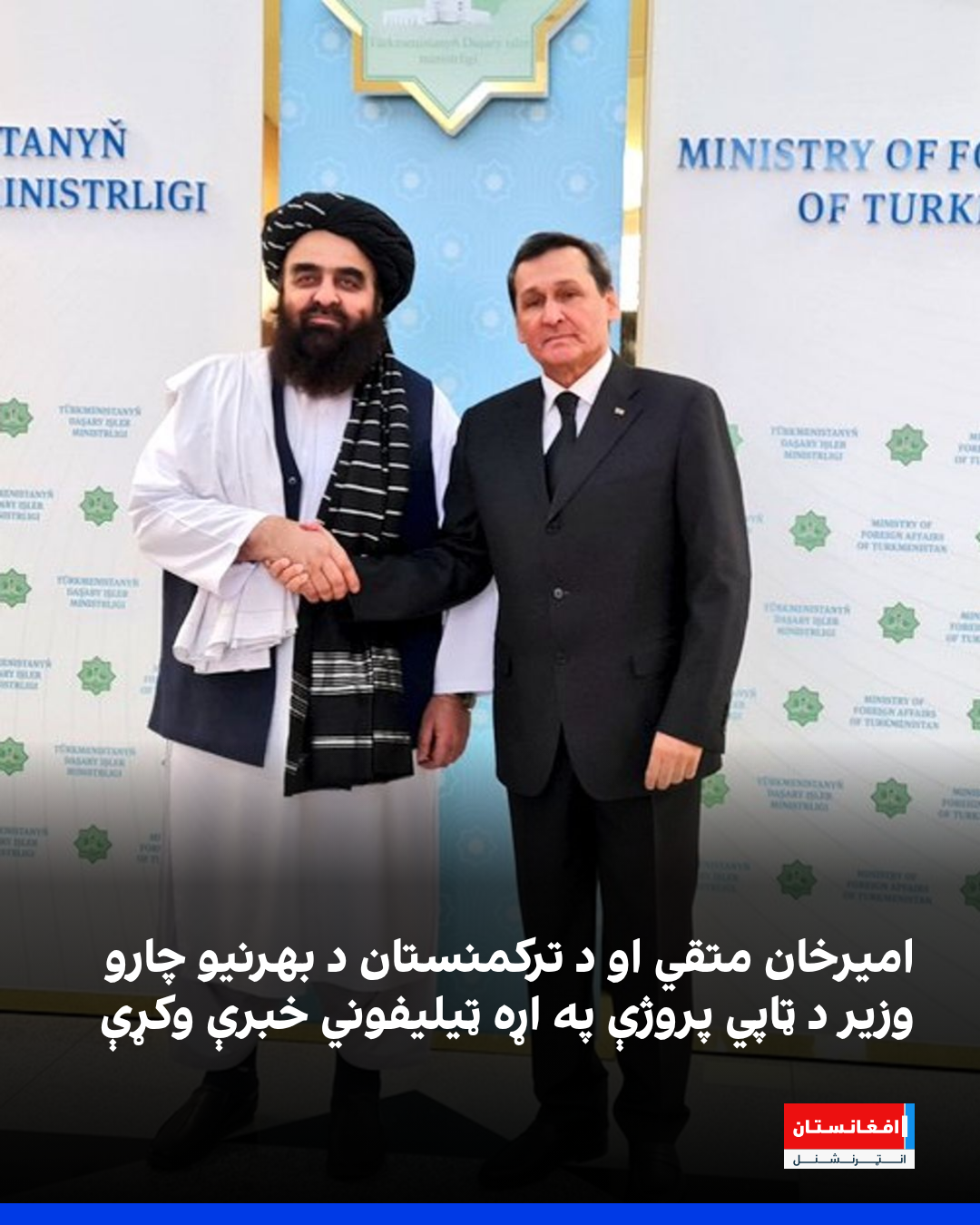 د طالبانو د بهرنیو چارو وزارت نن د یکشنبې په ورځ، د تلې ۱۳مه وویل، چې د دې ډلې د بهرنیو چارو وزیر امیرخان متقي او د ترکمنستان د بهرنیو چارو وزیر رشید مرادوف د سیاسي او اقتصادي اړیکو په اړه ټیلیفوني خبرې کړې دي.