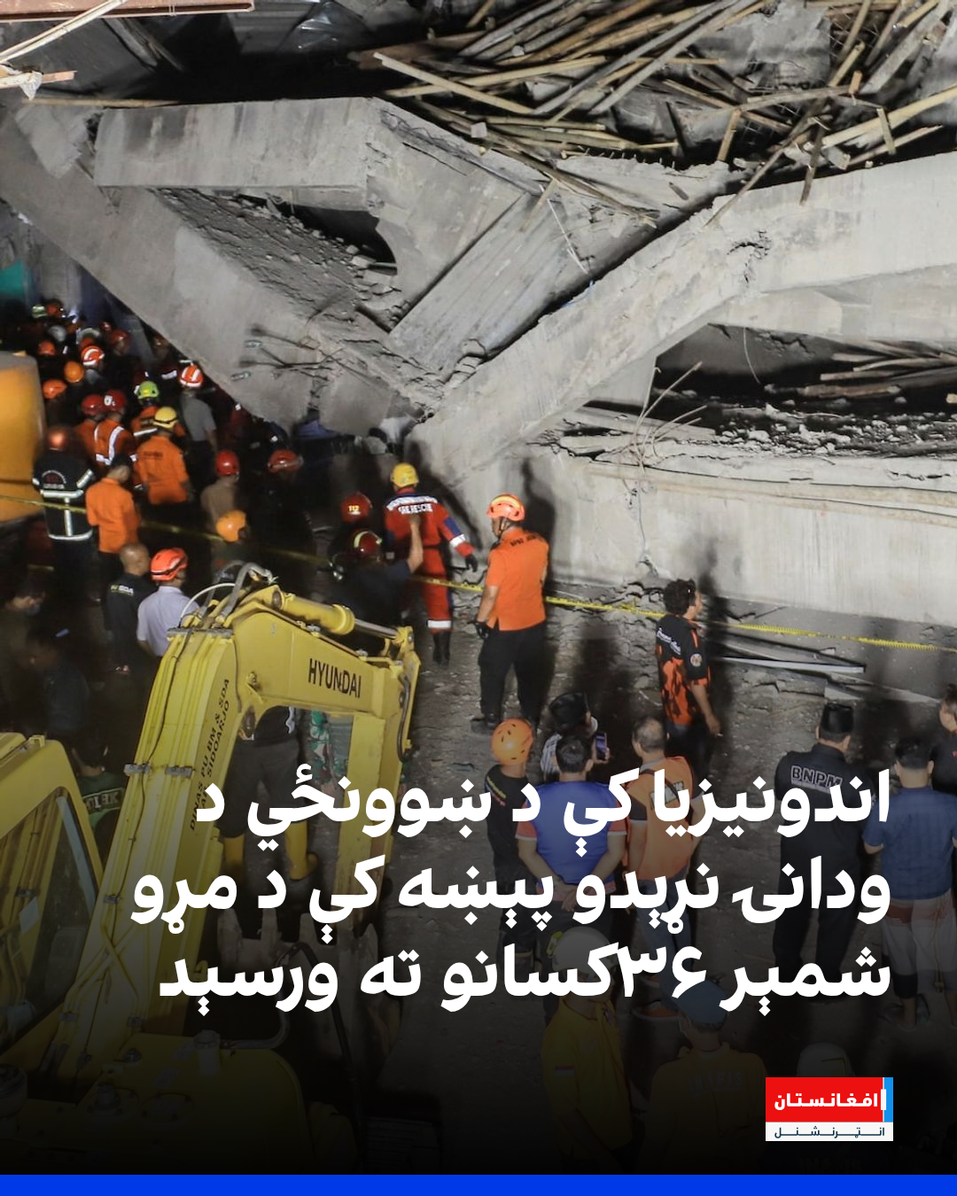 د اندونیزیا د ناورینونو د مدیریت ملي ادارې د یکشنبې په ورځ وویل، د اسلامي دینی لیسې ودانۍ د نړېدو له پېښې وروسته د مړو شمېر له ۱۶ څخه ۳۶کسانو ته لوړ شوی دی. دې ادارې زیاته کړې چې له پېښې ۷ورځې وتلي او لا هم د ۲۷تنو زده کوونکو د مړو موندلو لپاره هڅې روانې دي.