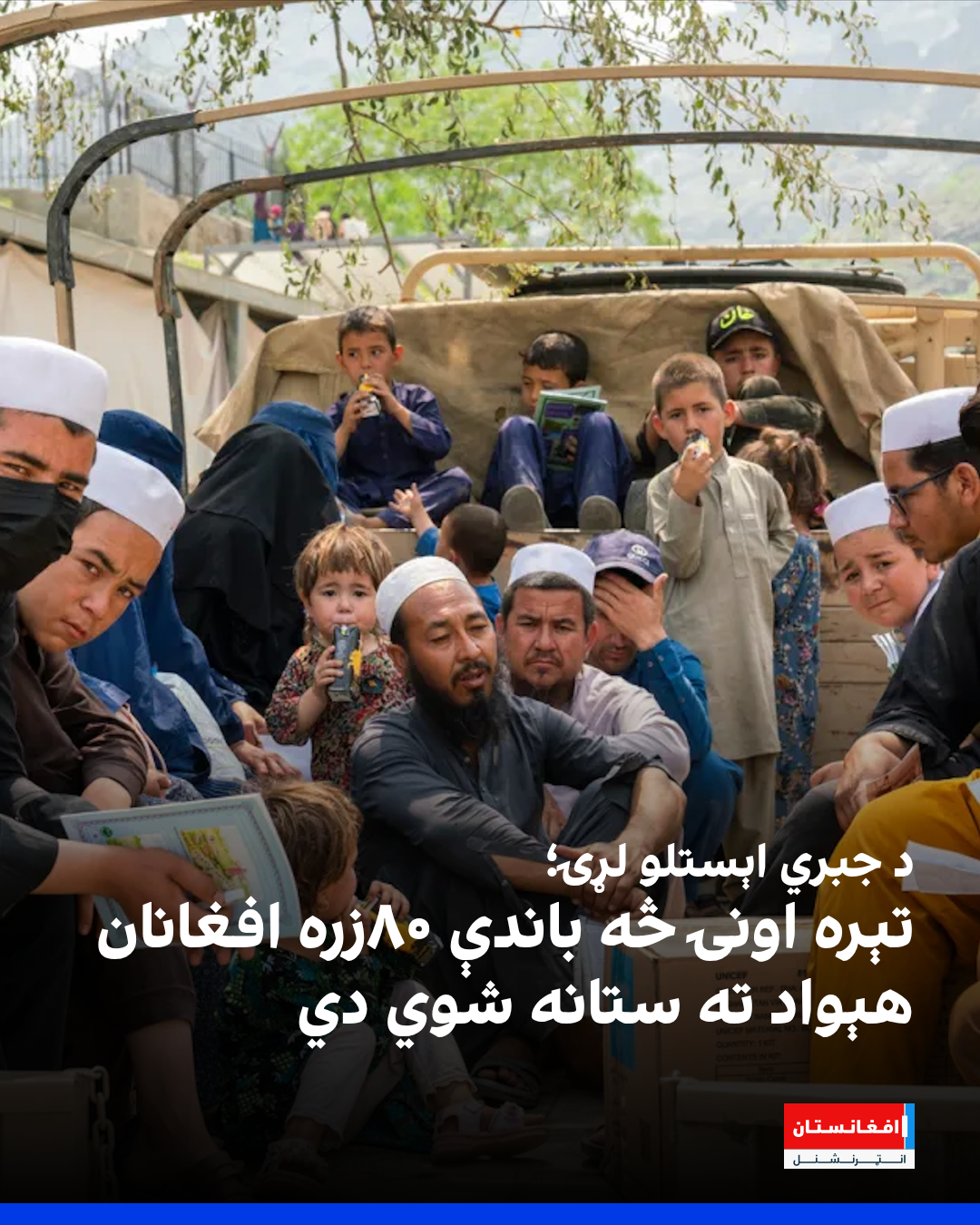 د طالبانو د کډوالو او بېرته راستنېدونکو چارو وزارت خبر ورکړی، چې په تېره یوه اونۍ کې له ایران، پاکستان او ترکیې نه ۸۰زره او ۸۰۰افغانان افغانستان ته ستانه شوي دي. دغه وزارت وایي، ۴۸۸۰۰ کسان له پاکستان نه، ۳۱زره او ۸۰۰ له ایران او پاتې نور له ترکیې نه ستانه شوي دي.