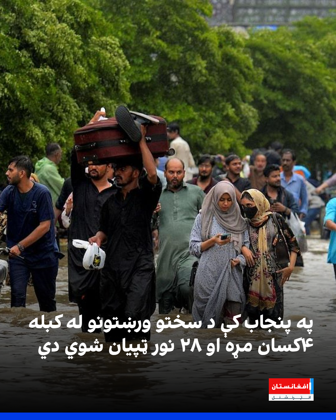 په تېرو ۲۴ساعتونو کې د پاکستان په پنجاب ایالت کې د سختو ورښتونو له امله د دوو ماشومانو په ګډون ۴ کسان مړه او ۲۸ نور ټپيان شوي دي. په دغه ایالت کې د نورو بارانونو اټکل هم شوی او په ملتان کې بېړنی حالت اعلان شوی دی.