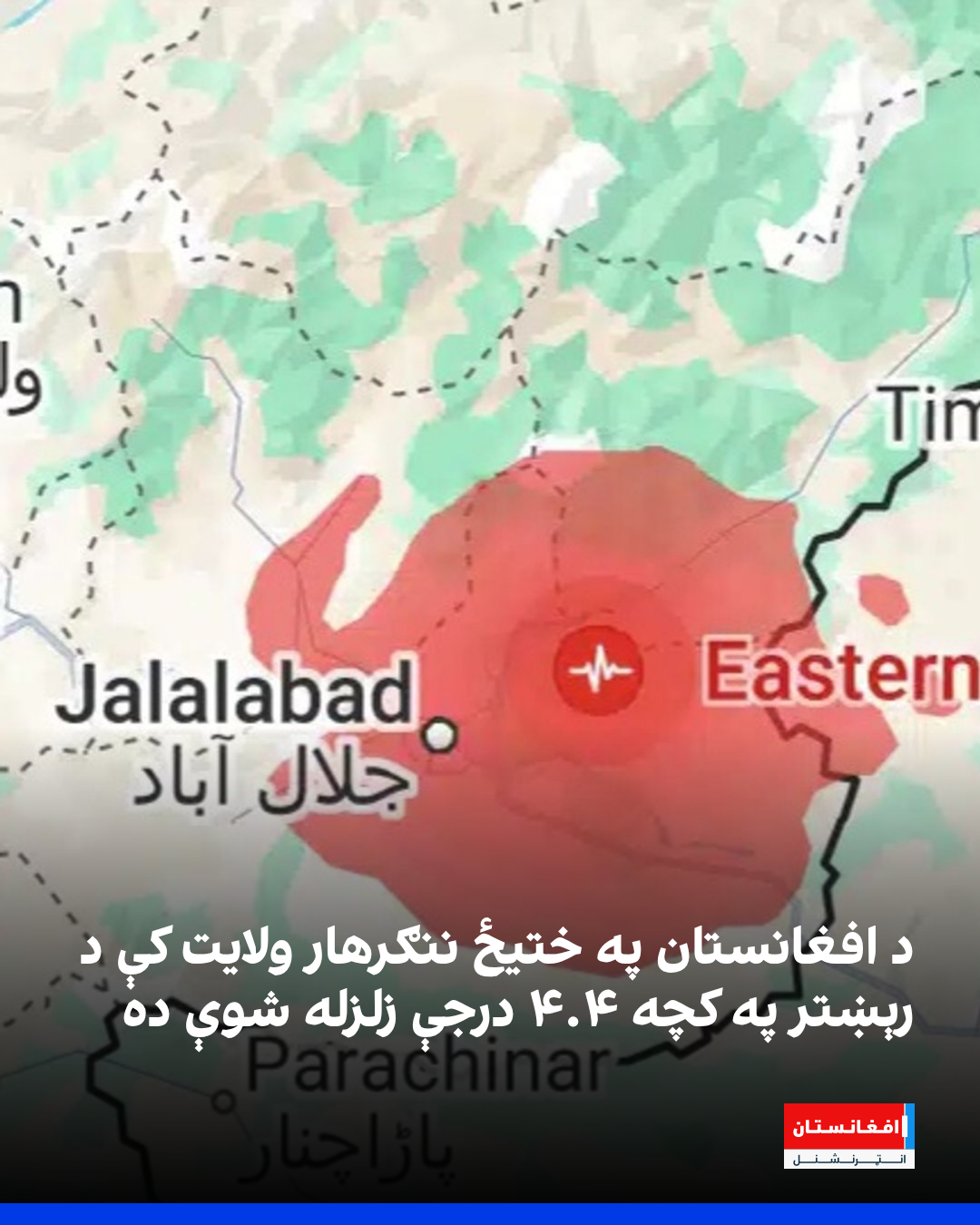 د افغانستان په ختیځ ننګرهار ولایت کې د رېښتر په کچه ۴.۴ درجې زلزله شوې ده. د امریکا د ځمکپېژندنې اداره وايي، چې د زلزلې مرکز د ننګرهار مرکز جلال اباد ښار و.