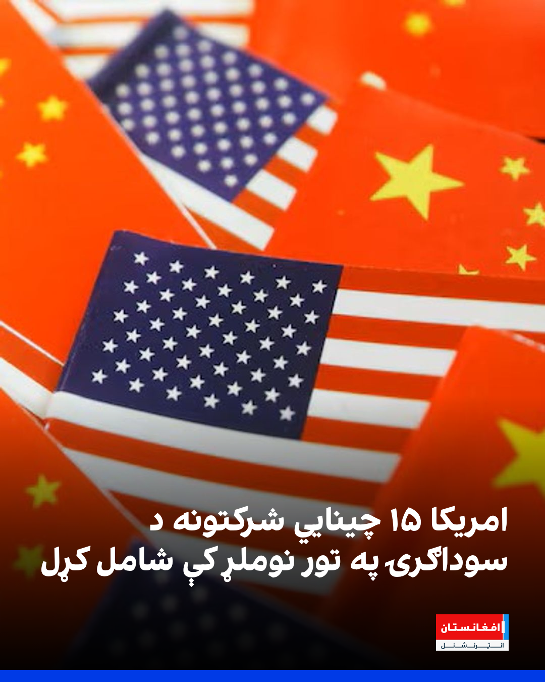 د امریکا د سوداګرۍ وزارت خبر ورکړی، ۱۵ هغه چینايي شرکتونه یې په تور نوملړ کې شامل کړي چې له دوی برېښنایي پرزې اخېستل کېدې او د ایران د ملاتړو وسلهوالو ډلو له لوري د بېپیلوټه الوتکو په جوړولو کې ترې کار اخېستل کېده.